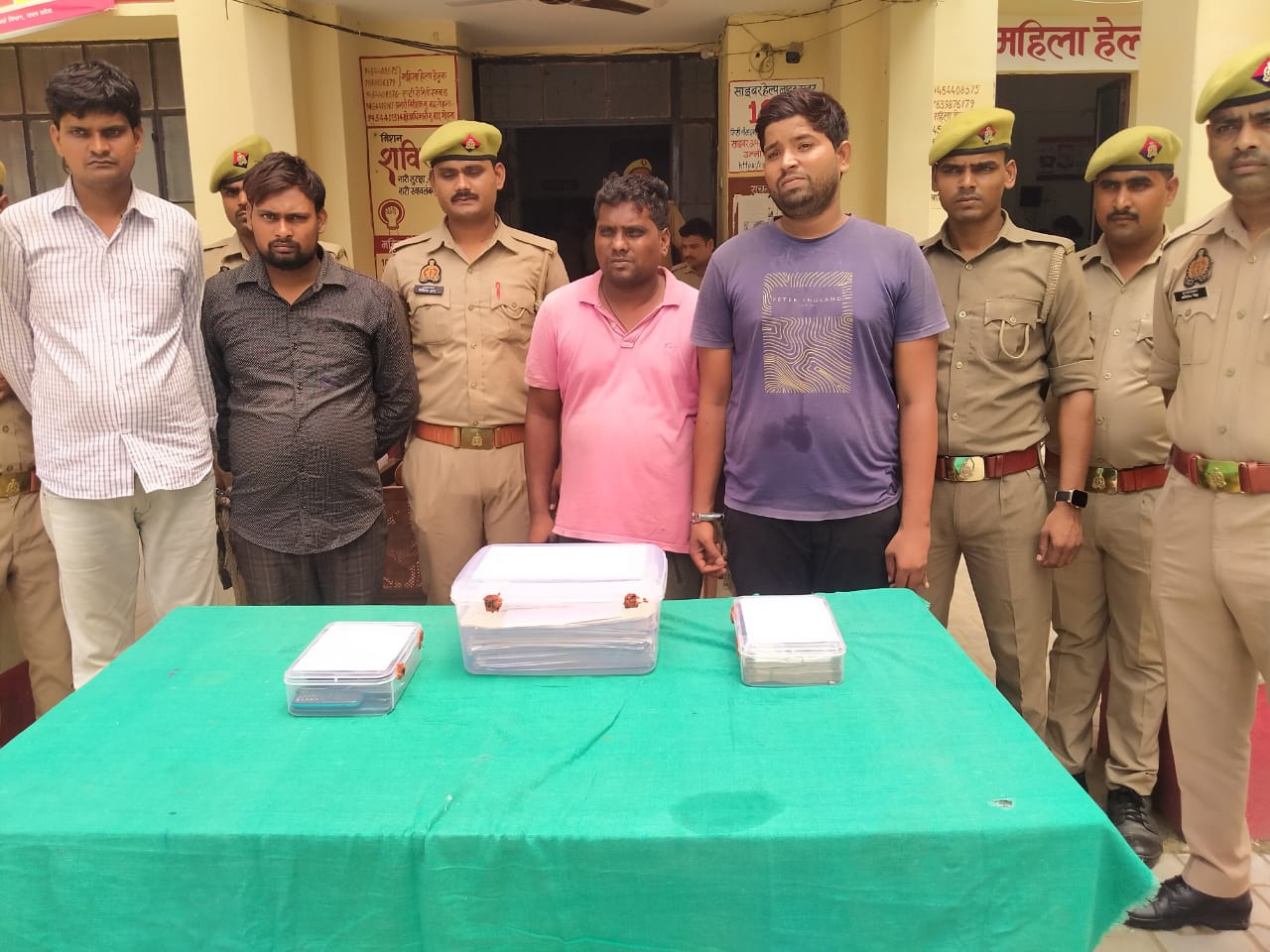 गिरफ्तार किए गए अभियुक्तों में इंद्रजीत निवासी सुपनधा थाना विंध्याचल-मिर्जापुर, अनिल कुमार चौहान ग्राम ओटनी मुहम्मदाबाद गोहना जनपद मऊ, अश्वनी तिवारी मुंगराबादशाहपुर जनपद जौनपुर, अमरेंद्र बहादुर बिंद निवासी गददोपुर जनपद जौनपुर को गिरफ्तार कर जेल भेज दिया। गिरफ्तार करने वाली टीम में प्रभारी निरीक्षक संजय कुमार त्रिपाठी, अखिलेश सिंह, चंद्रभान यादव, विजय यादव, आदर्श श्रीवास्तव, उपनिरीक्षक अमित कुमार मिश्रा,धर्मेंद्र सिंह, विकास यादव, विराट पटेल, राजेश यादव, धर्म चंद सोनकर रोहित सिंह आदर्श मिश्रा,अविनाश धर दुबे, पंकज यादव, अनिरुद्ध सिंह, विशाल सिंह आदि रहे।
