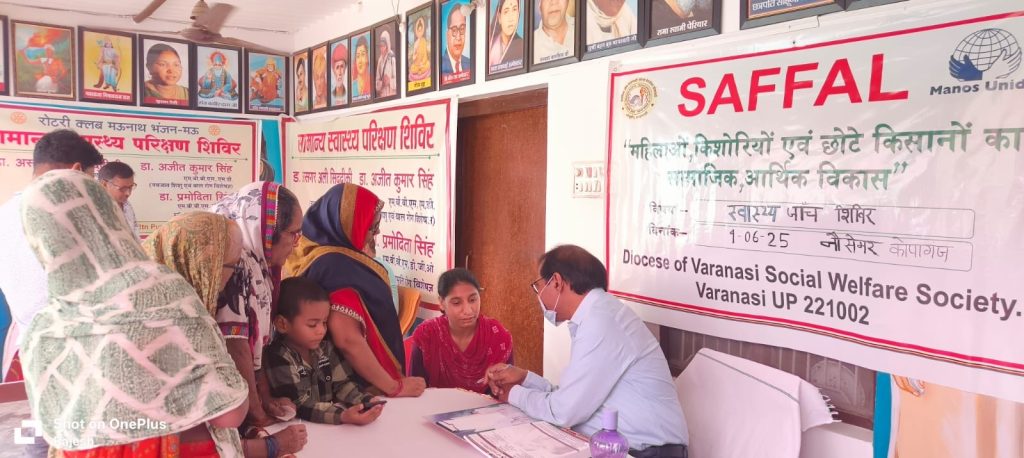 मऊ। कोपागंज व्लाक के नौसेमर ग्राम पंचायत में अमरवाणी पुनर्वास केंद्र ताजोपुर मऊ के सफल परियोजना के अंतर्गत रोटरी क्लब मऊ नाथ भंजन की ओर से आयोजित स्वास्थ्य जांच शिविर में तकरीबन 152 मरीज का स्वास्थ्य परीक्षण एवं उन्हें दवाएं प्रदान की गई।