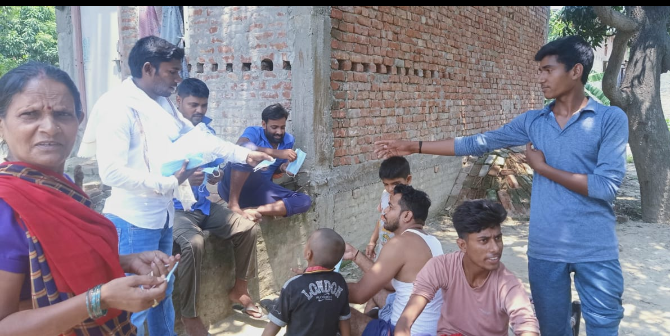 इस वैश्विक महामारी COVID-19 आपदा में जहाँ लोग अपने घरों में रहकर अपनी सुरक्षा का ध्यान रख रहे है,वही भारतीय जनता पार्टी के युवा मोर्चा के कार्यकर्ता निरन्तर सेवा कार्य करते आ रहे है,तथा अपनी सेवा हर गरीब असहाय व्यक्ति तक पहुचाने की कोशिश में लगे हुए है,सभी कार्यकर्ता तथा पदाधिकारी बनाफा बूथ के गाँव में जाकर डोर टू डोर सम्पर्क करके सबका हालचाल जाना और उन्हें मास्क और सैनेटाइजर वितरित किया,सोनू सोनकर ने लोगो से सोशल डिस्टेंसिग का पालन करने के लिए आग्रह किया और पार्टी के इस कार्यक्रम के माध्यम से लोगो को इस वायरस से लड़ने के लिए जागरूक किया जा रहा है,इस अवसर पर भाजयुमो-जिला कार्यसमिति सदस्य सोनू सोनकर, एवं युवा साथी वीरबहादुर सोनकर,सुरज चौहान, अविनाश, मोनू यादव रामदुलारे चौहान, अमरनाथ, दिलीप सोनकर आदि कार्यकर्ताओं की उपस्थिति में कार्यक्रम सम्पन्न किया गया ।