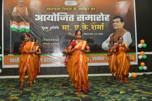 स्वतंत्रता दिवस पर आयोजित कार्यक्रम में छात्र छात्राओं ने देशभक्ति से संबंधित मनमोहक प्रस्तुतियां दी जिससे वातावरण देशभक्ति के रंग में सरोबार हो गया।स्वतंत्रता संग्राम सेनानियों के परिजनों को अंगवस्त्र भेंट कर सम्मानित किया गया। मंत्री श्री शर्मा ने कहा कि इन परिवारों का योगदान कभी भुलाया नहीं जा सकता, और सरकार इनके कल्याण के लिए सतत प्रयासरत है।