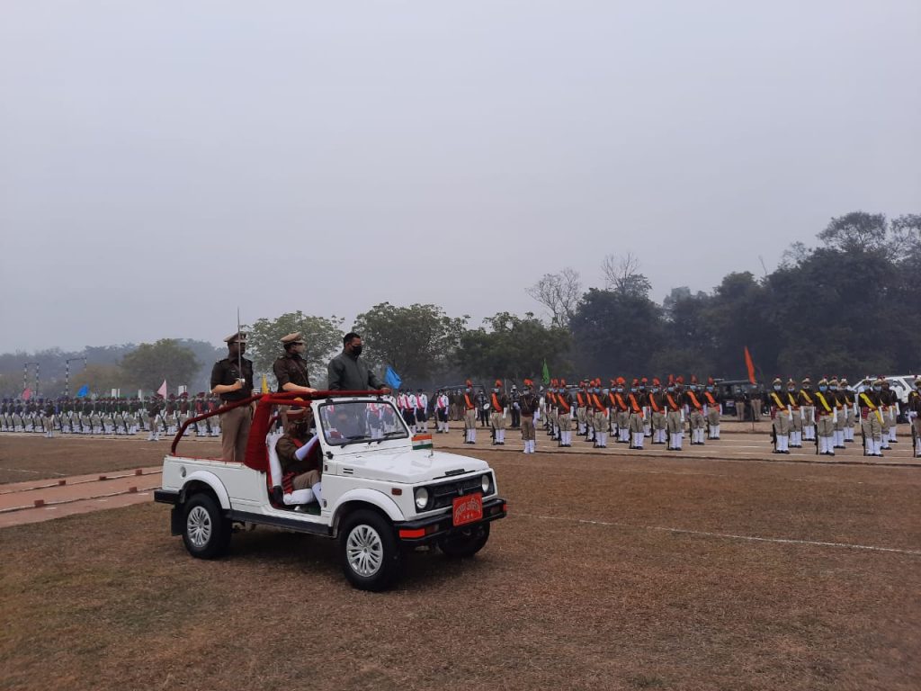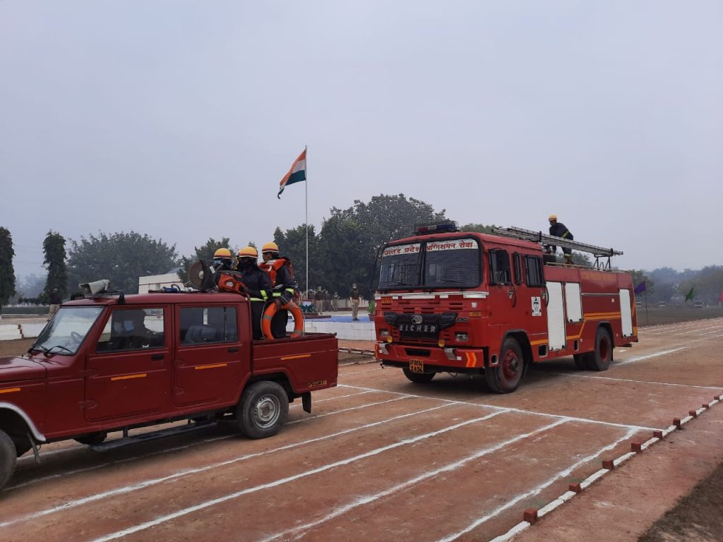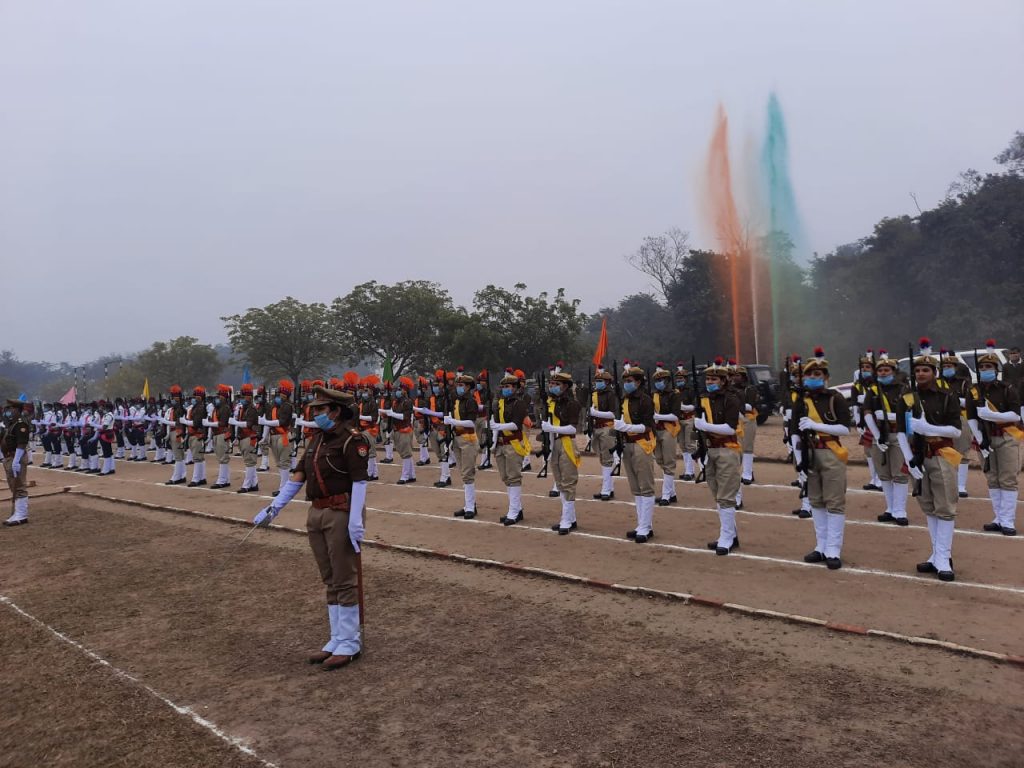 मऊ के पुलिस लाइन परेड ग्राउंड स्थल पर 26 जनवरी 2022 को 73वें गणतंत्रदिवस पर आयोजित होने वाले परेड के फुल ड्रेस ग्रांड रिहर्सल का हुआ आयोजन