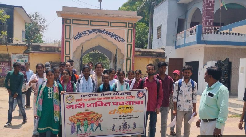 नारी शक्ति वंदन कार्यक्रम के अंतर्गत स्वामी सहजानंद स्नातकोत्तर महाविद्यालय द्वारा नारी शक्ति पदयात्रा का सफल आयोजन किया गया। इस पदयात्रा में महाविद्यालय के राष्ट्रीय सेवा योजना (NSS) के स्वयंसेवकों एवं छात्राओं ने उत्साहपूर्वक भाग लिया। यात्रा का शुभारंभ प्राचार्य कक्ष से होकर विकास भवन, जनपद गाजीपुर तक किया गया।