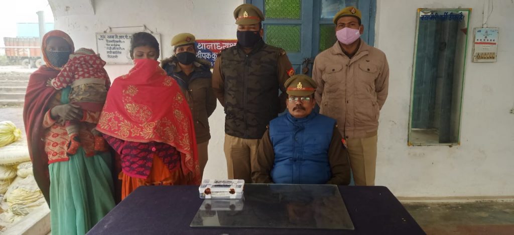 गिरफ्तार अभियुक्तागण का नाम पता:- 1. रिंकी पुत्री भगवती खरवार निवासी बराढी मुसईटोला, थाना अकोढी गोला, जनपद रोहतास, बिहार उम्र 21 वर्ष व 2. सपना पत्नी वासु खरवार निवासी बिदेशीटोला, थाना अकोढी गोला, जनपद रोहतास, बिहार उम्र 35 वर्ष। बरामद सम्पत्ति का विवरण:- एक अदद मंगलसूत्र, एक जोड़ा झुमका तीन तलिया सोने का व एक जोड़ी पायल चाँदी की। पुलिस द्वारा पूछताछ गया तो रिंकी खरवार निवासी बराढी मुसईटोला, थाना अकोढी गोला, जनपद रोहतास, बिहार उम्र 21 वर्ष व 2. सपना पत्नी वासु खरवार निवासी बिदेशीटोला, थाना अकोढी गोला, जनपद रोहतास, बिहार उम्र 35 वर्ष द्वारा बताया गया कि साहब हमलोग ट्रेनों मे औरतों को लक्ष्य करके उसके आगे पीछे होकर भीड़ का स्वरुप बनाकर उनके पर्स आदि से चोरी करते हैं। बरामदशुदा जेवरात के ब पूछने पर रिंकी पुत्री भगवती खरवार ने बताया कि साहब सपना दीदी के कहने पर मैने करीब दो माह पूर्व औडिहार रेलवे स्टेशन पर समय करीब सवा चार बजे शांम मऊ से वाराणसी की तरफ जाने वाली डेमो ट्रेन में एक औरत के लेडिज पर्स से एक लाल रंग का छोटा पर्स चुरा कर सपना दीदी को दे दिया था जिसमे ये गहने मिले थे। पकड़ी गयी सपना उपरोक्त से पूछने पर बता रही है कि साहब चोरी किये गये लाल रंग के छोटे पर्स मे इन गहनो के साथ साथ तीन चार हजार रुपये भी थे जो बच्चे के इलाज व खाने-पीने मे खर्च हो गये। मैने पैसे व जेवरात लेकर पर्स को अनजान जगह पर फेक दिया था।