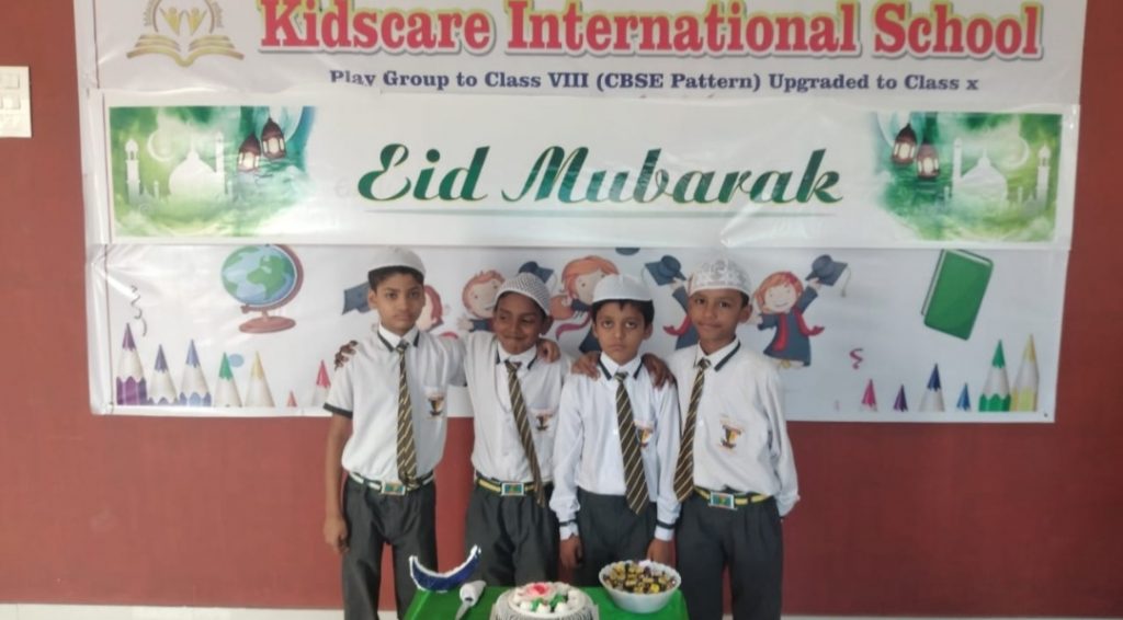 मऊ। किड्स केयर इंटरनेशनल स्कूल अदरी मोड़ मऊ में ईद का त्योहार बहुत ही धूम धाम से मनाया गया। इस अवसर पर बच्चों ने एक दूसरे को मिठाई व सेवियाँ खिलाई और आपस में गले मिलकर बधाई दी। स्कूल की प्रिन्सिपल श्रीमती नन्दनी सिंह ने बताया की हमारा देश त्योहारों का देश है। ईद हमें आपस में मिल जुलकर रहना सिखाता है और सभी का सम्मान करना सिखाता है, विद्यालय के सभी टीचरों ने बच्चों के साथ मिलकर केक काटकर एक दूसरे को केक और मिठाई खिलाई।इस अवसर पर गुलिस्ताँ, अलतमस, आफ़िया, इवान, रुद्रा, वैदिक, पुण्य, हार्दिक, अमृता, अमित, आयुषि, वंदना, रीना, बिंदु,उषा आदि उपस्थित रहे।