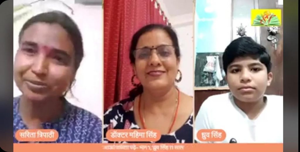 .ध्रुव ने बताया कि उन्हें पहले तो थोड़ा डर लगा पर जल्दी ही उन्हें अच्छा लगने लगा और कार्यक्रम से जुड़कर प्रसन्नता महसूस कर रहे है। सरिता त्रिपाठी जी ने सुबह जल्दी उठना और समय से सारे काम करने के लाभ बताए।
