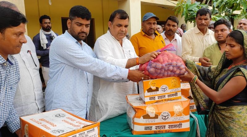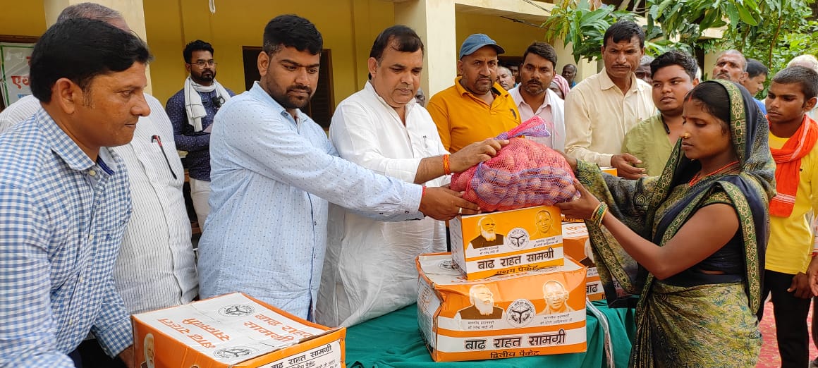 600 बाढ़ पीड़ितों को मंत्री प्रतिनिधि शिवप्रकाश उपाध्याय सुब्बी ने दिया खाद्य सामग्री कीट