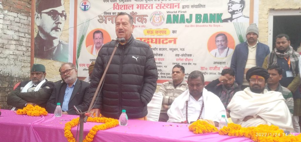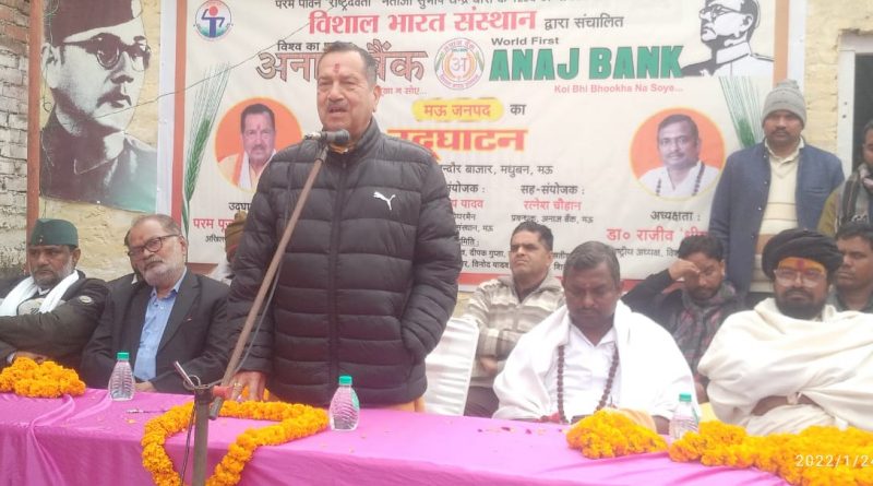 मऊ में विश्व के पहले अनाज बैंक का उद्घाटन किया इंद्रेश कुमार ने
