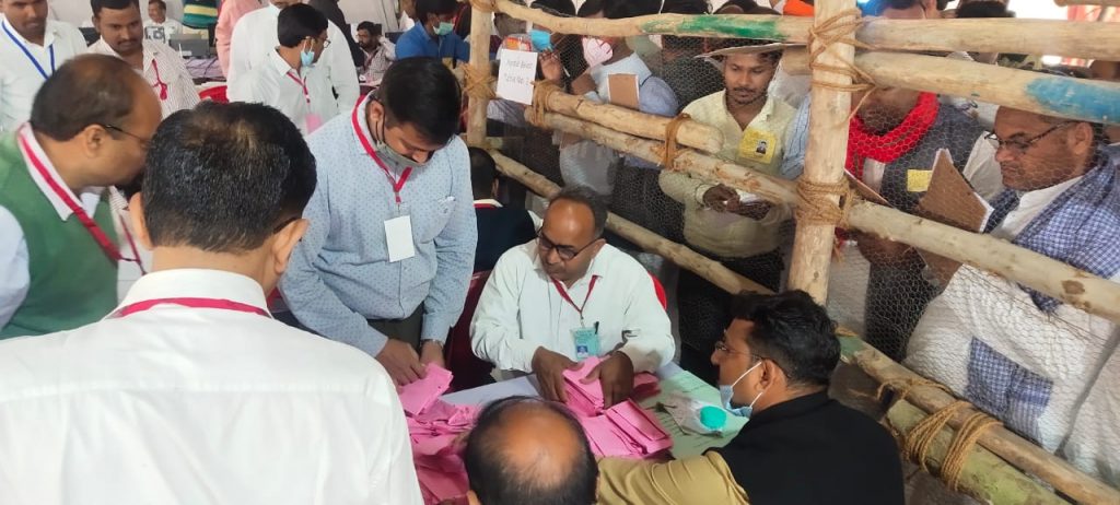 मऊ जनपद के सभी 4 विधानसभा सीटों पर मतगणना नगर के कृषि उत्पादन मंडी के प्रांगण में सुबह से चालू हो गई है जिसमें सर्वप्रथम बैलेट पेपर की मतगणना शुरू हुई।
