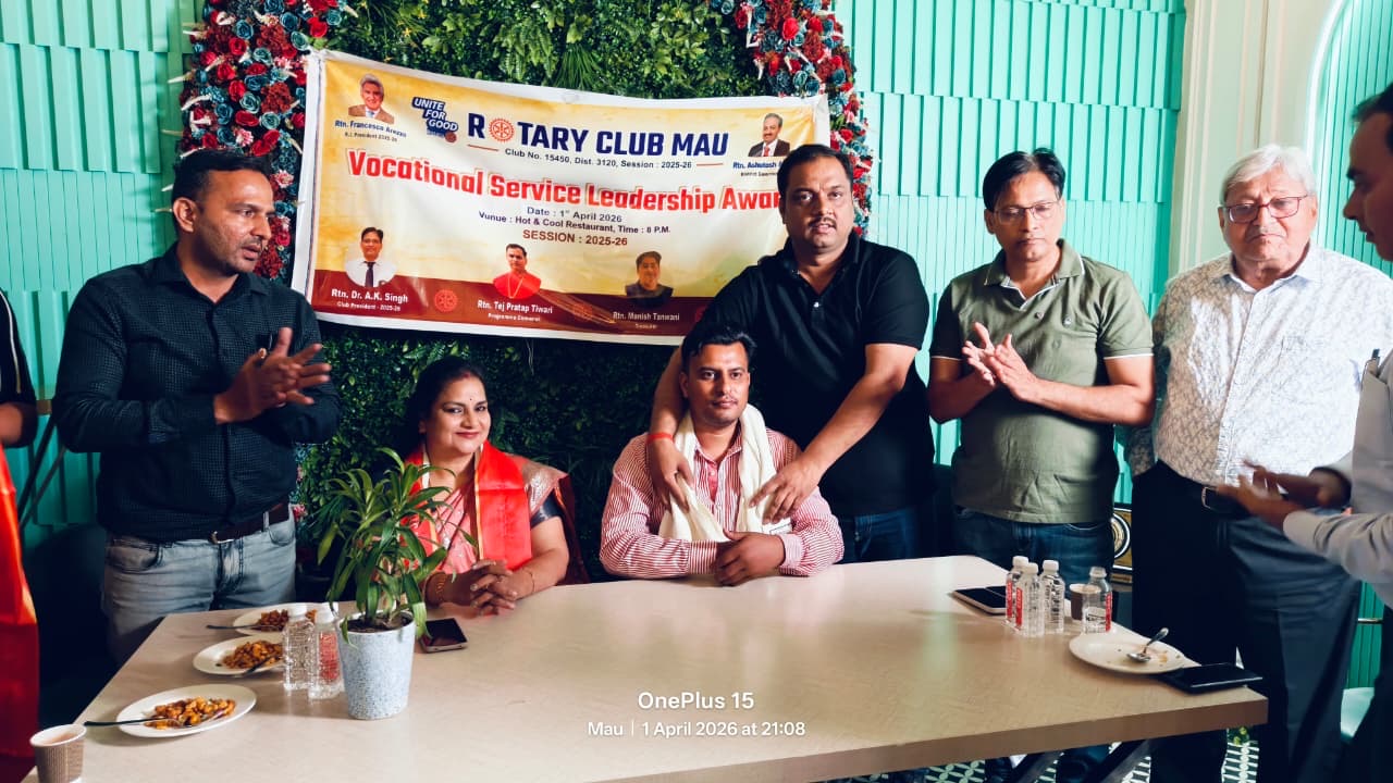 मऊ। रोटरी क्लब मऊ द्वारा मंगलवार शाम नगर के एक प्रतिष्ठित प्लाजा में रोटरी वोकेशनल लीडरशिप अवार्ड कार्यक्रम का भव्य आयोजन किया गया। कार्यक्रम में क्लब के सदस्यों के साथ-साथ नगर के अनेक गणमान्य नागरिकों की गरिमामयी उपस्थिति रही।