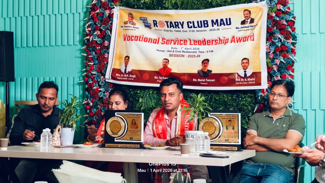 मऊ में रोटरी क्लब का भव्य आयोजन, उत्कृष्ट व्यक्तित्वों को मिला वोकेशनल लीडरशिप अवार्ड