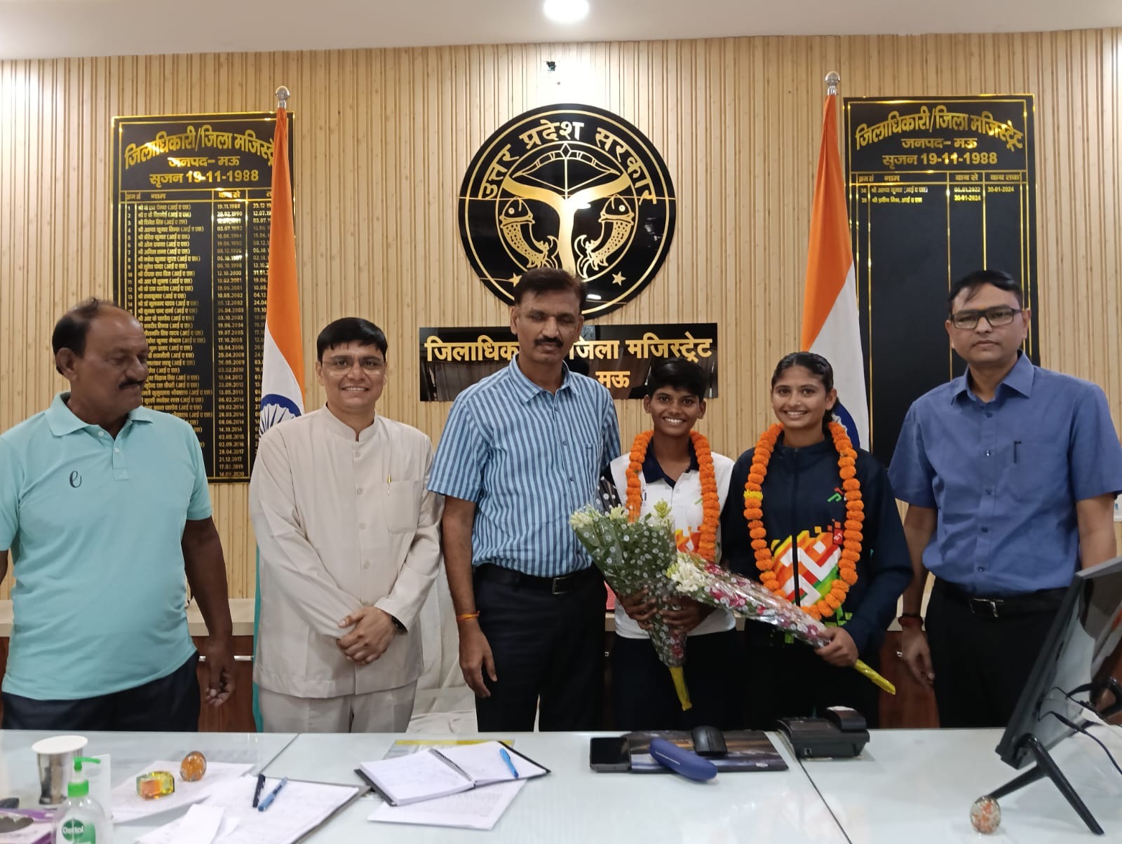 मऊ। डॉ भीमराव अंबेडकर स्पोर्ट्स स्टेडियम मऊ की महिला हॉकी खिलाड़ी शशि कला का केंद्रीय औद्योगिक सुरक्षा बल में सब इंस्पेक्टर के पद पर चयन हुआ है, साथ ही शशि कला की छोटी बहन कु० आरिका का खेलों इण्डिया में चयन एवं राष्ट्रीय चैम्पियन शीप में सिल्वर मेडल प्राप्त करने पर जिलाधिकारी द्वारा दोनों बहनों को सम्मानित किया गया। शशि कला एवं आरिका दोनों बहनें डॉक्टर भीमराव अंबेडकर स्पोर्ट्स स्टेडियम मऊ में हॉकी की खिलाड़ी ऑफीसर्स कॉलोनी भुजौटी की निवासी हैं।