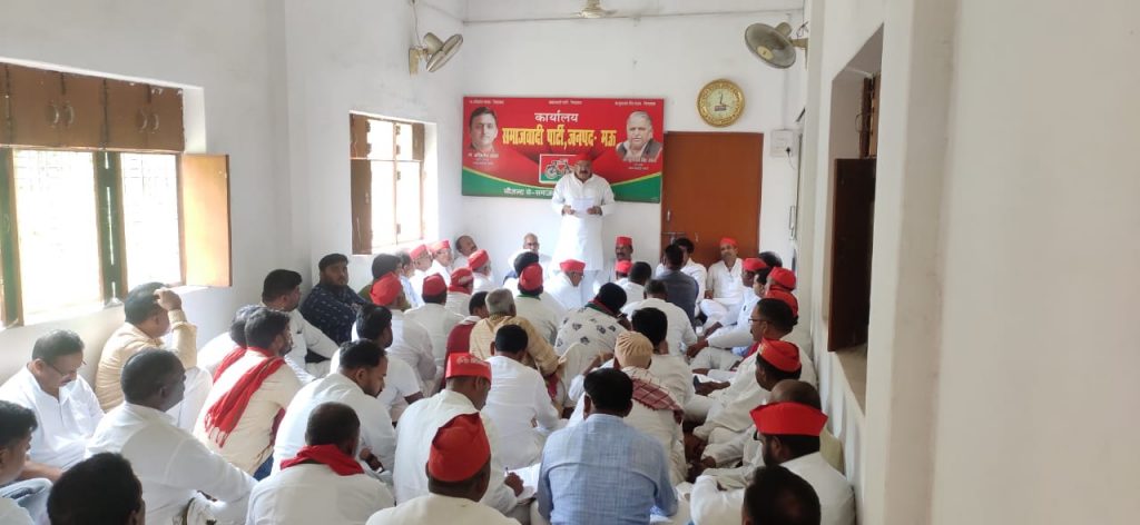 मऊ। समाजवादी पार्टी के कार्यालय पर निवर्तमान जिलाध्यक्ष धर्मप्रकाश यादव की अध्यक्षता में जिला इकाई की मासिक बैठक हुई जिसमें सभी वक्ताओं ने संकल्प लिया कि आगामी विधानसभा चुनाव में समाजवादी पार्टी की सरकार राष्ट्रीय अध्यक्ष अखिलेश यादव के नेतृत्व में बयाएँगे।बैठक को सम्बोधित करते हुए जिलाध्यक्ष ने कहा कि हमारे कार्यकर्ता प्रत्येक बूथ पर संगठन को प्रभावी बनाने के लिए प्रयासरत है और इसी कड़ी मके मतदाताओं को मतदाता सूची में जोड़ने का कार्य युद्ध स्तर पर जारी है उन्होंने कार्यकर्ताओं से आह्वान किया कि आगामी चुनाव में जिले का प्रत्येक बूथ जीत कर प्रदेश में सरकार बनानी है।बैठक को सम्बोधित करते हुए पूर्व विधायक सुधाकर सिंह ने कहा कि इस बार भाजपा चुनाव में धांधली कर के जितना चाहती है जिसे हम उनके मंसूबों को कामयाब नही होने देंगे चाहे इसके लिए जितनी भी कुर्बानी देनी पड़े।इसी क्रम में पूर्व एम एल सी राम जतन राजभर ने कहा कि हम संगठन की सबसे निचली ईकाई बूथ को मजबूत करके प्रदेश में सरकार बनाएंगे। जिलाध्यक्ष धर्मप्रकाश यादव ने डॉ रामकृष्ण यादव को ब्लाक प्रमुख संघ के जिलाध्यक्ष चुने जाने पर माल्यर्पण कर स्वागत किया।समाजवादी पार्टी की नीतियों से प्रभावित हो कर बसपा नेता रणवीरपुर ग्राम सभा के प्रधान राम नाथ यादव(प्रबंधक पुरुषोत्तम इंटर कॉलेज रणवीरपुर मऊ)एवं अनिल कुमार यादव(प्रबंध धर्मदेव इंटर कॉलेज हाजीपुर घोसी मऊ) ने समाजवादी पार्टी की सदयता ग्रहण किया। जिसका संचालन जिला महासचिव कुद्दुस अंसारी ने किया । बैठक में मुख्यरूप से राजेन्द्र मिश्रा, गुड्डू चौधरी, सीताराम कुशवाहा नन्हकू राजभर, रामधनी यादव धीरज राजभर,अखण्ड प्रकाश पाण्डेय राजेन्द्र पाण्डेय संजय सागर, डॉ जय प्रकाश यादव,पूर्व प्रमुख जय प्रकाश कनोजिया, मुरलीधर यादव, दूधनाथ यादव,राजेश यादव,लालचंद्र यादव, अप्पू मौर्य,राम प्रकाश यादव,बन्ने खां,पंकज उपाध्याय, रणधीर सिंह सहित सभी पदाधिकारि व कार्यकर्ता मौजूद रहे।