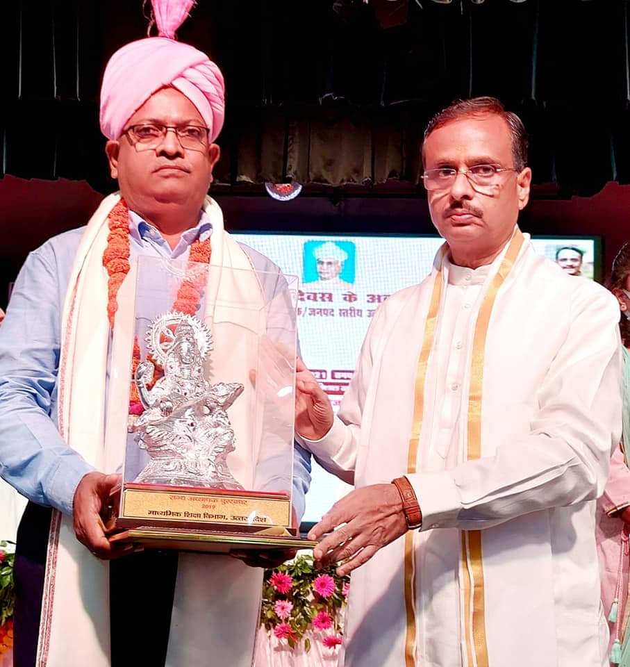 मऊ। शिक्षक दिवस के अवसर पर सिटी मान्टेनसरी स्कूल लखनऊ में राज्य स्तरीय शिक्षक सम्मान समारोह आयोजित हुआ। राज्य अध्यापक पुरस्कार वर्ष 2019 के लिए चयनित देव भास्कर तिवारी प्रधानाचार्य डीएवी इंटर कॉलेज मऊ को माननीय उपमुख्यमंत्री एवं मंत्री माध्यमिक शिक्षा डॉ दिनेश शर्मा जी , माध्यमिक शिक्षा राज्यमंत्री डॉ गुलाब देवी जी , विशेष सचिव श्री शम्भू सिंह , श्रीमती नेहा प्रकाश , श्री जय शंकर दुबे , श्री उदयभान त्रिपाठी एवं शिक्षा निदेशक डॉ विनय कुमार पांडेय जी ने अंगवस्त्रम, प्रशस्ति पत्र, मां सरस्वती की प्रतिमा, एवं रुपए 25000=00 का चेक देकर राज्य अध्यापक पुरस्कार से सम्मानित किया । देव भास्कर तिवारी प्रधानाचार्य डीएवी इंटर कॉलेज मऊ को उनकी कर्मठता, अनुशासनप्रियता, ईमानदारी, कार्यकुशलता, समयबद्धता, उत्कृष्ट परीक्षा फल, और डीएवी इंटर कॉलेज मऊ को शीर्ष पर पहुंचाने के लिए पुरस्कृत किया गया। श्री तिवारी के सम्मान से पूरा पूर्वांचल अपने को गौरवान्वित महसूस कर रहा है। देव भास्कर तिवारी जनपद के शिक्षकों के लिए प्रेरणा स्रोत का काम करेंगे। इस अवसर पर श्री राजेंद्र प्रसाद यादव जिला विद्यालय निरीक्षक मऊ, जय नारायण द्विवेदी अध्यक्ष, ऋषिकेश पांडेय, भीष्म यादव, अरविंद कुमार त्रिपाठी मनोज कुमार सिंह सहित जनपद के समस्त शिक्षकों, बुद्धिजीवियों, समाज के संभ्रांत नागरिकों ने बधाई दी है।