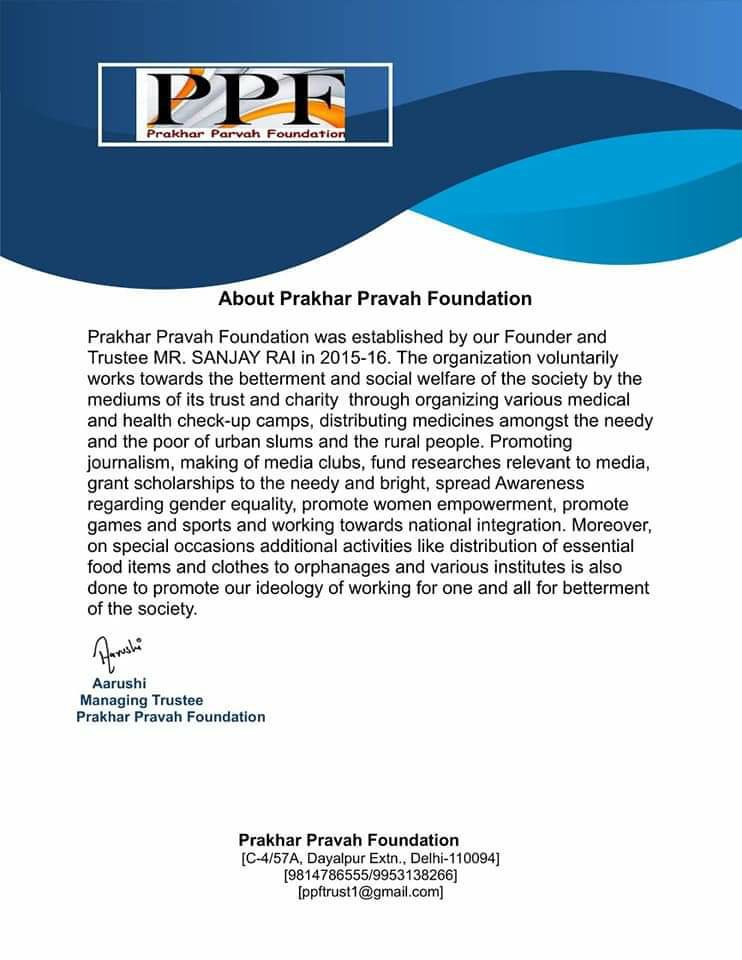 प्रखर प्रवाह फाउंडेसन ट्रस्ट इनको ‘कोरोना वारियर्स” सम्मान प्रदान कर उनके उज्ज्वल भविष्य की कामना करता है ।