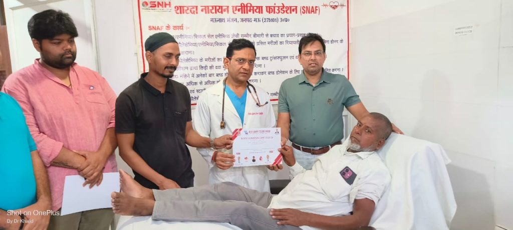 मऊ। कारगिल विजय दिवस के अवसर पर रोटरी क्लब मऊ के तत्वावधान में शारदा नारायण हॉस्पिटल ब्लड बैंक में एक रक्तदान शिविर का आयोजन किया गया।